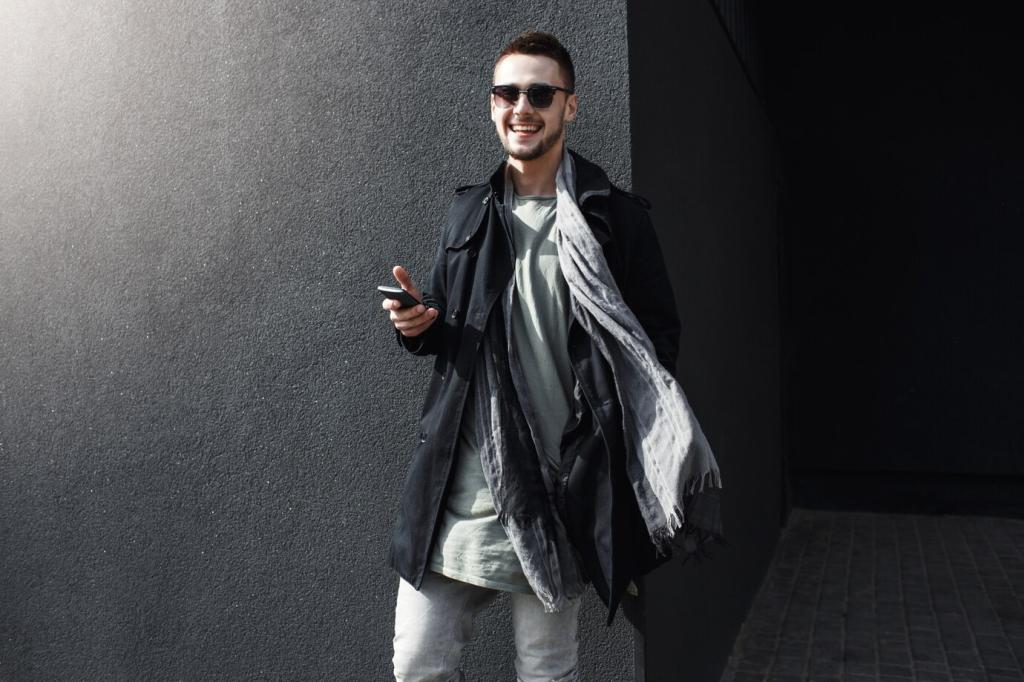 MikroLEDs, E-Ink-Ränder und subtile Haptik signalisieren, ohne zu stören. Gesten am Handgelenk, Stimmen aus dem Ärmel und doppelte Fingertipps ersetzen Tasten. So bleibt dein Flow ungebrochen, egal ob im Meeting, auf dem Trail oder beim Kochen.